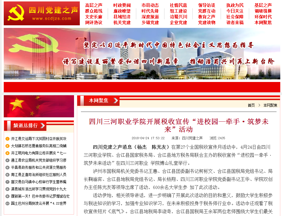 四川党建之声:四川三河职业学院开展税收宣传“进校园—牵手·筑梦未来”活动