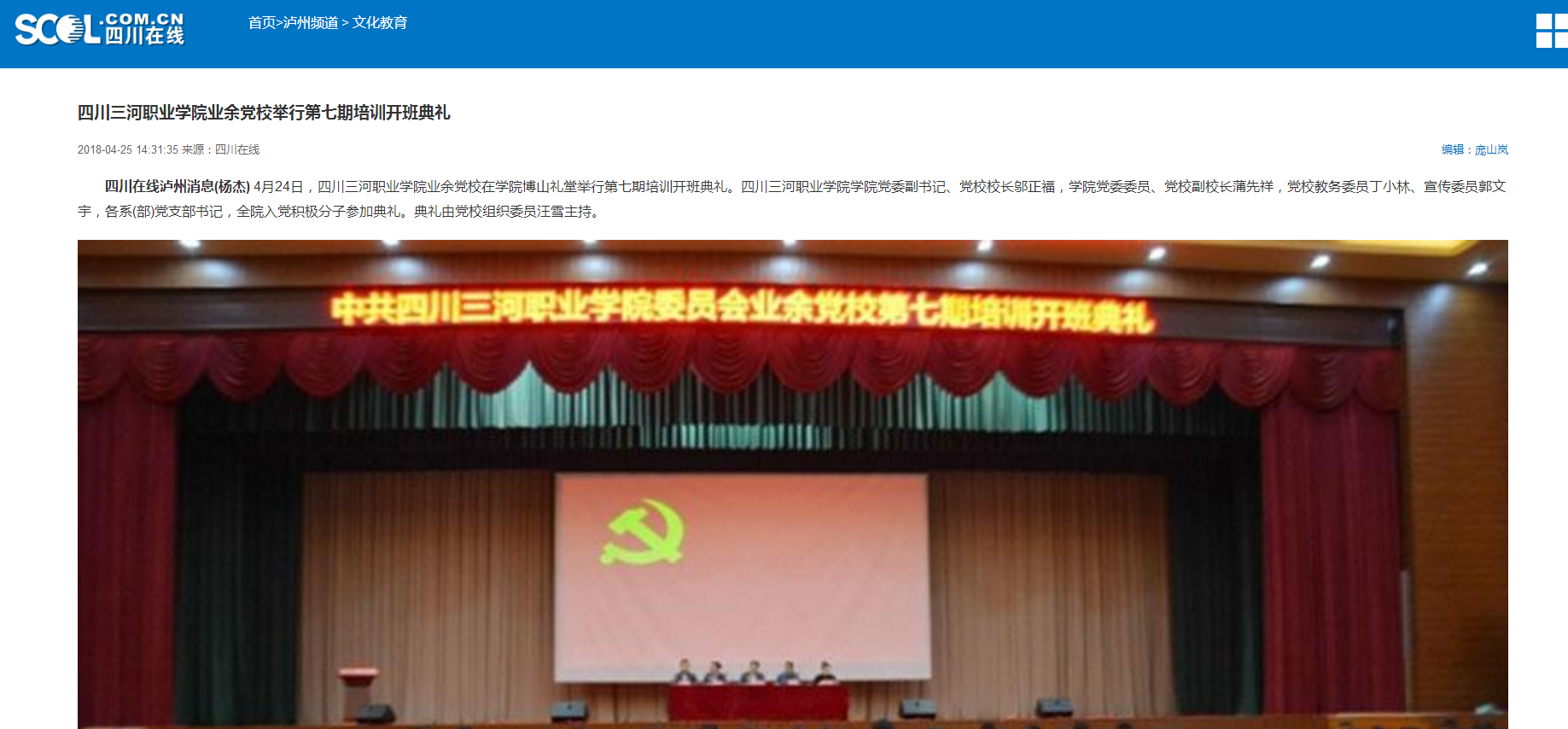 四川在线:四川三河职业学院业余党校举行第七期培训开班典礼