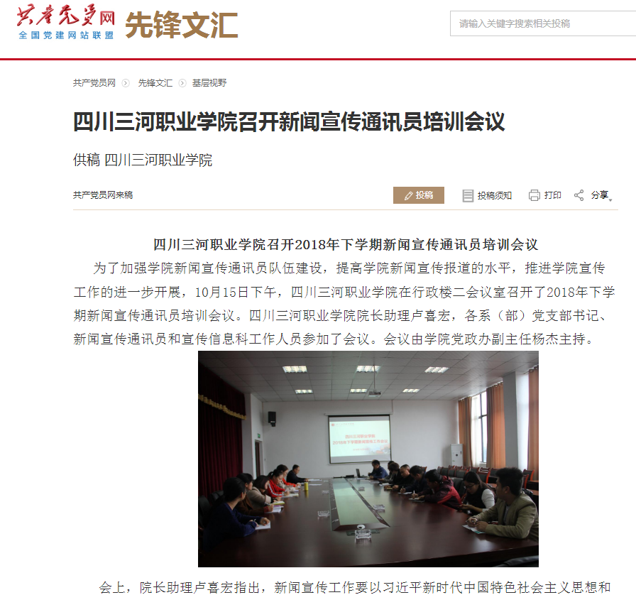 共产党员网:四川三河职业学院召开新闻宣传通讯员培训会议