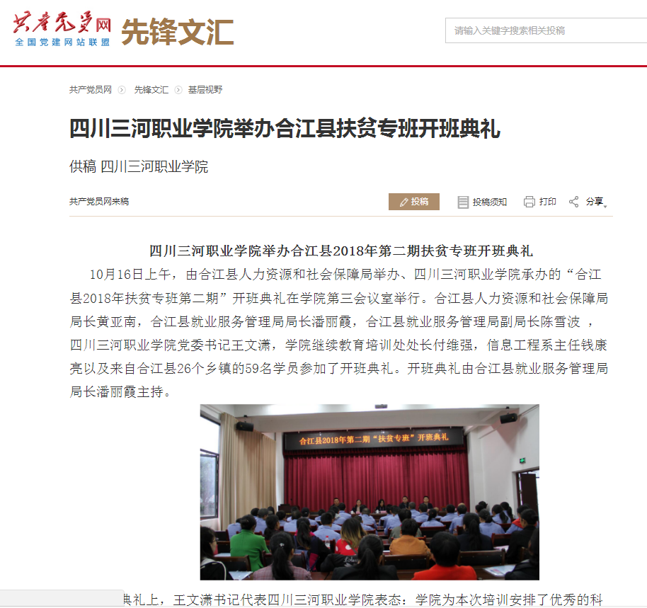 共产党员网:四川三河职业学院举办合江县扶贫专班开班典礼
