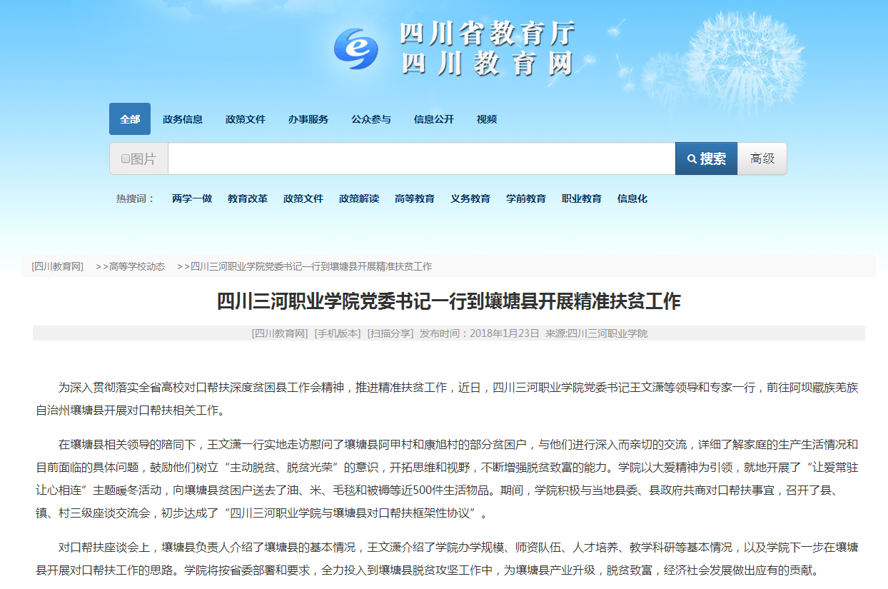 四川省教育厅官网:四川三河职业学院党委书记一行到壤塘县开展精准扶贫工作