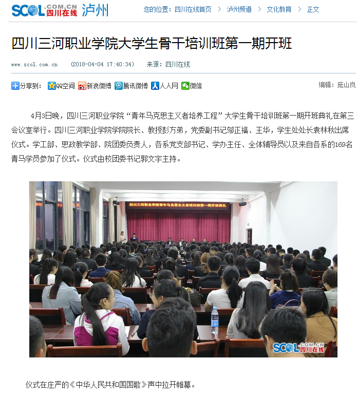 四川在线:四川三河职业学院大学生骨干培训班第一期开班