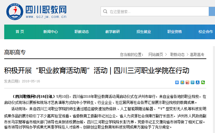 四川职教网:积极开展“职业教育活动周”活动—四川三河职业学院在行动
