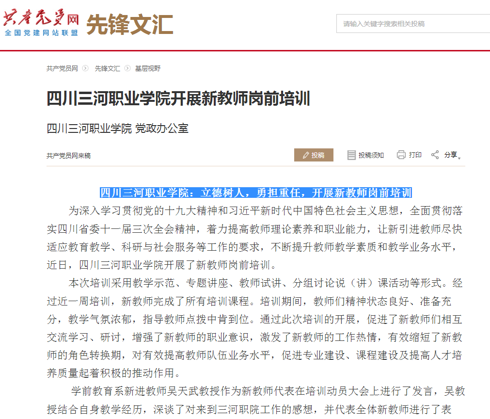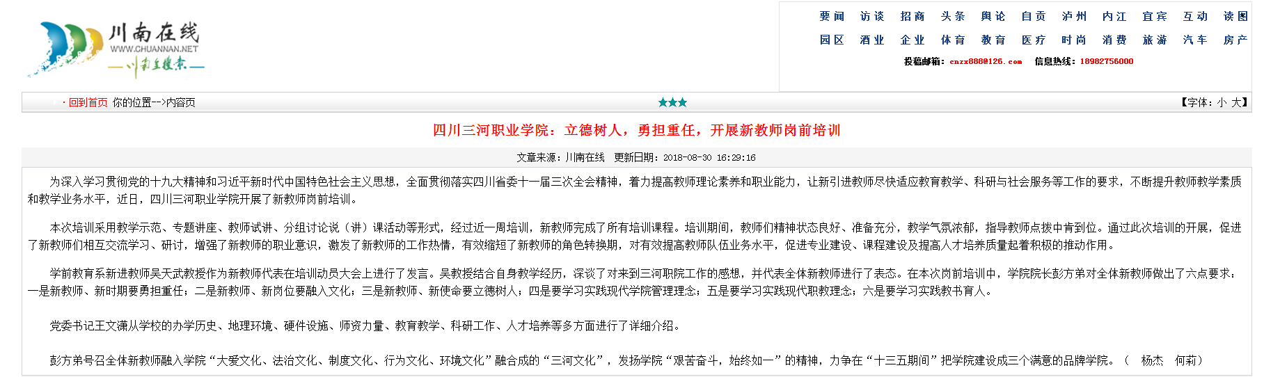 川南在线:四川三河职业学院:立德树人,勇担重任,开展新教师岗前培训