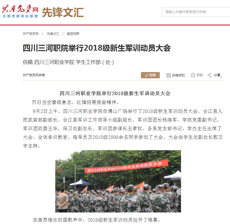 共产党员网:四川三河职院举行2018级新生军训动员大会