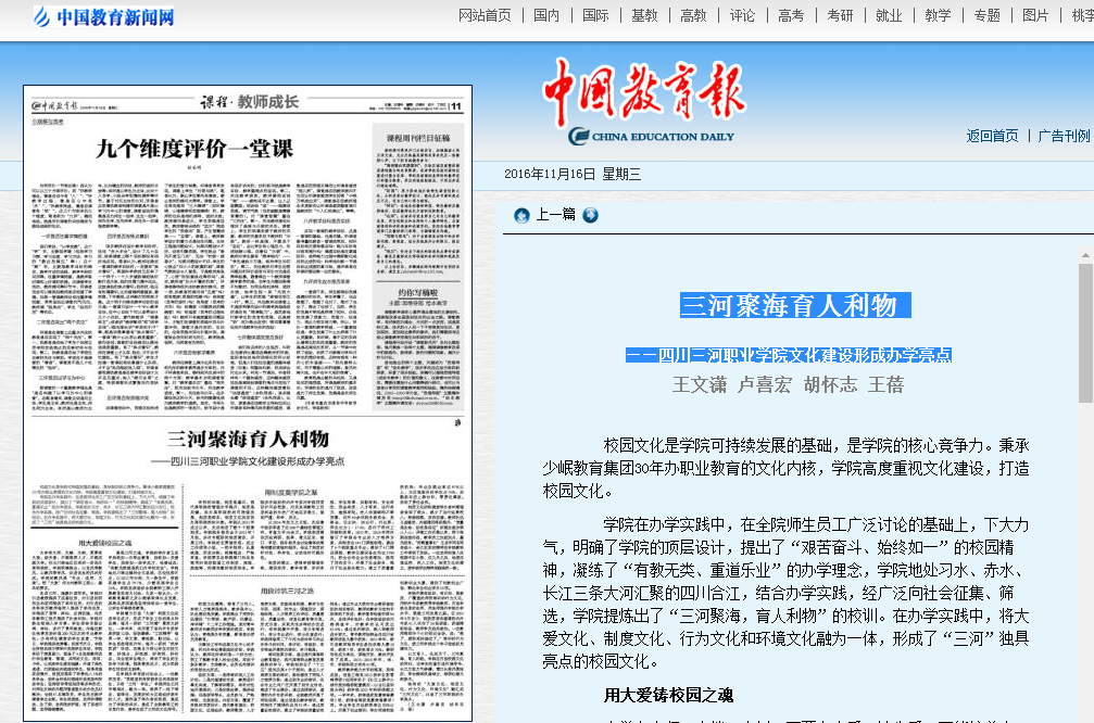 中国教育报网:三河聚海育人利物 ——四川三河职业学院文化建设形成办学亮点