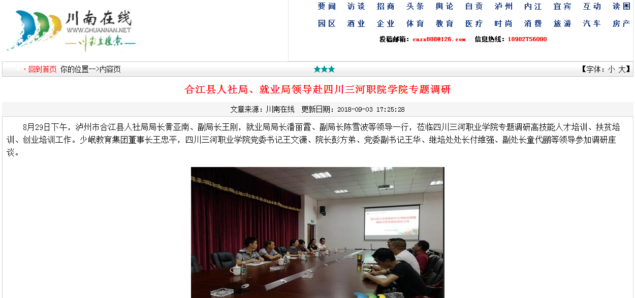 川南在线:合江县人社局、就业局领导赴四川三河职院学院专题调研