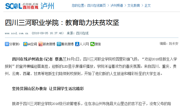 四川在线:四川三河职业学院:教育助力扶贫攻坚