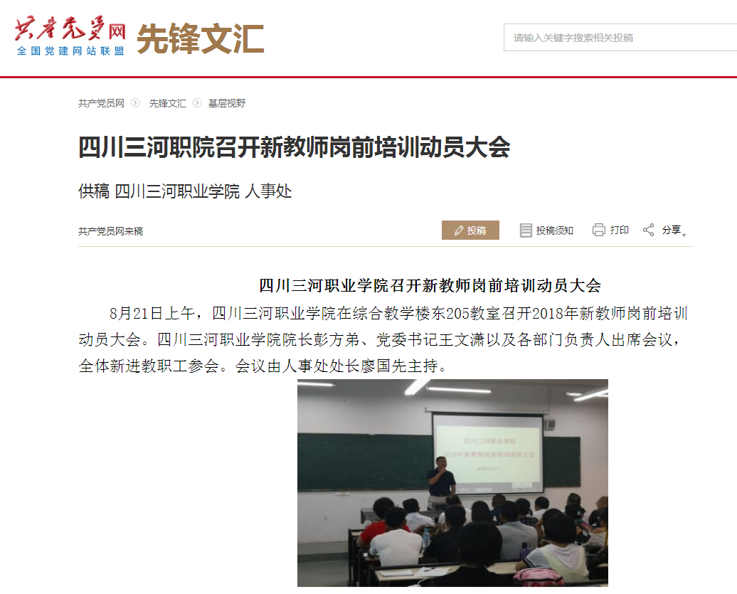 共产党员网:四川三河职业学院召开新教师岗前培训动员大会