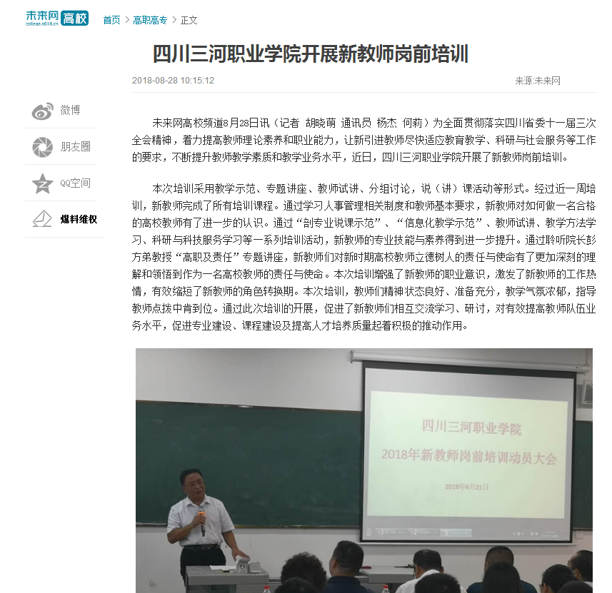 未来网:四川三河职业学院开展新教师岗前培训