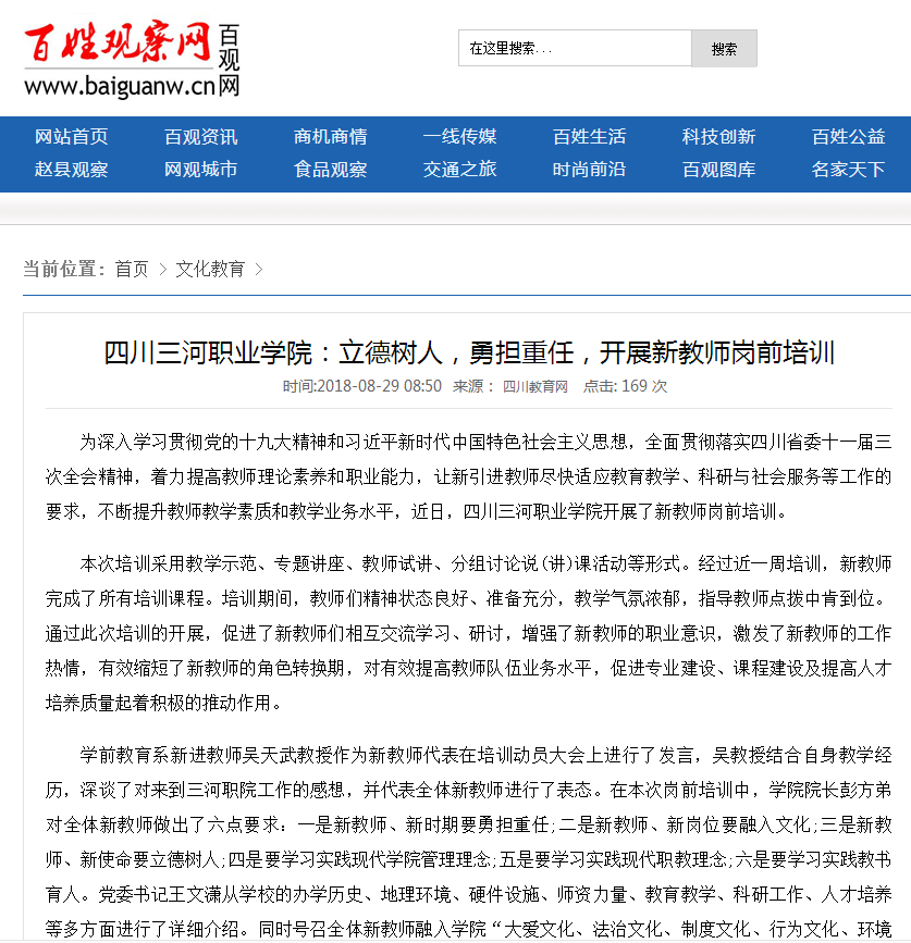百姓观察网:四川三河职业学院:立德树人,勇担重任,开展新教师岗前培训