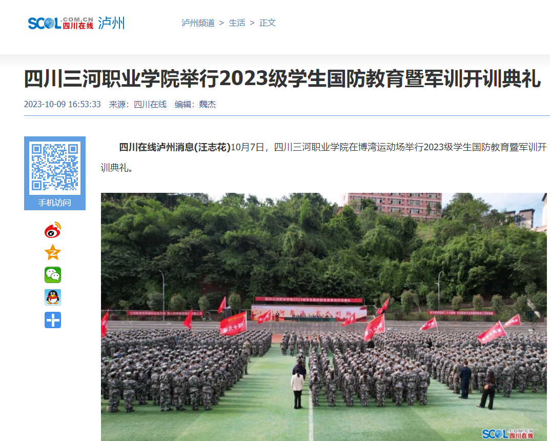 四川在线:四川三河职业学院举行2023级学生国防教育暨军训开训典礼