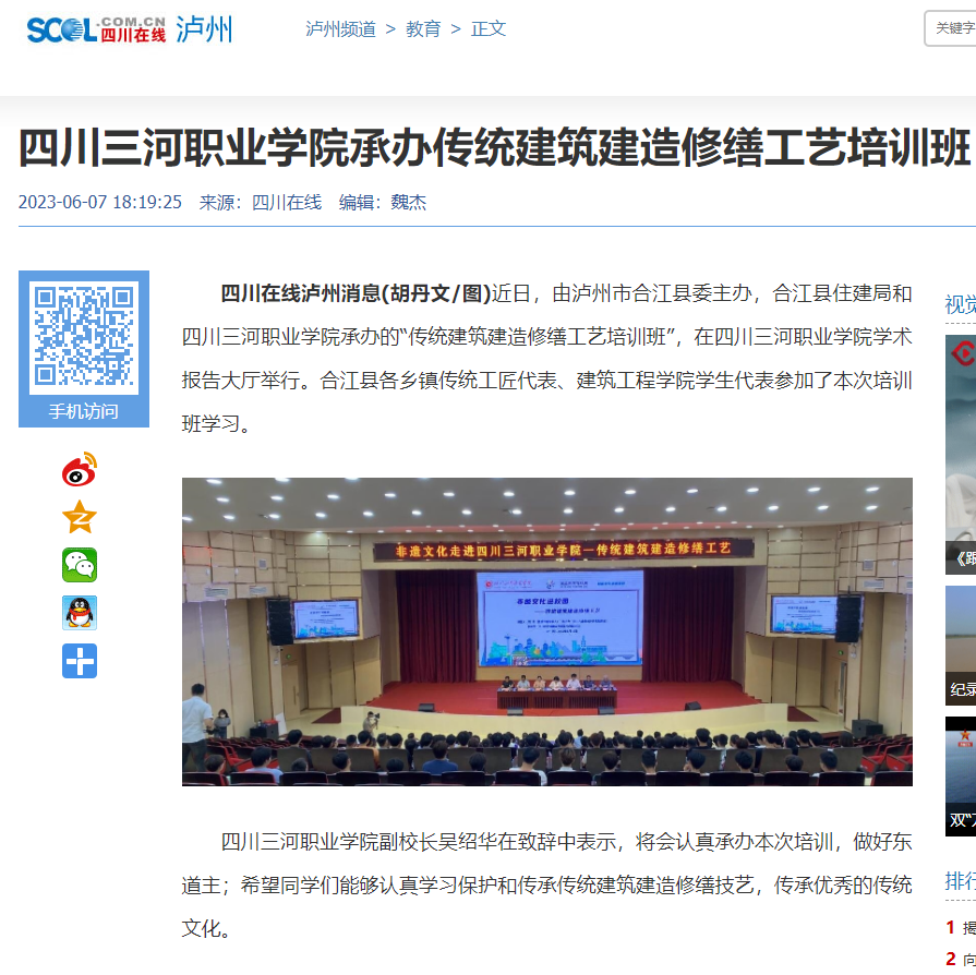 四川在线:四川三河职业学院承办传统建筑建造修缮工艺培训班
