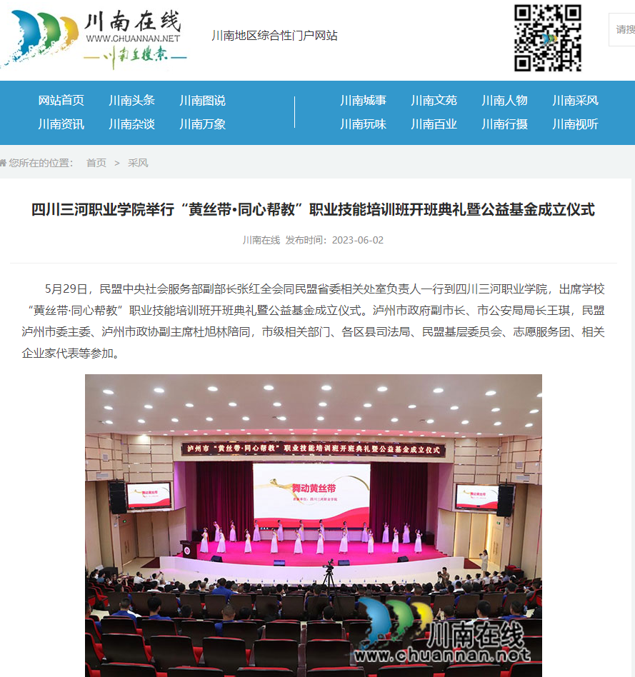 川南在线:四川三河职业学院举行“黄丝带·同心帮教”职业技能培训班开班典礼暨公益基金成立仪式