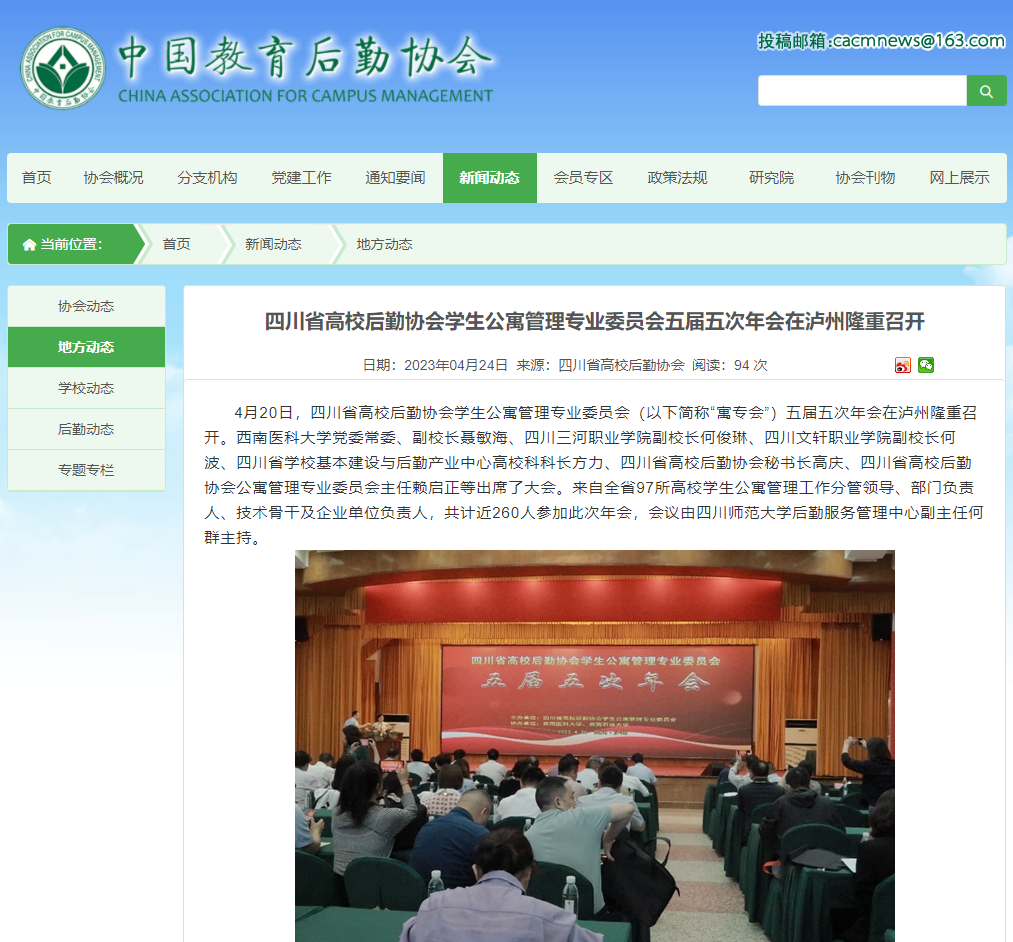 中国教育后勤协会:四川省高校后勤协会学生公寓管理专业委员会五届五次年会在泸州隆重召开