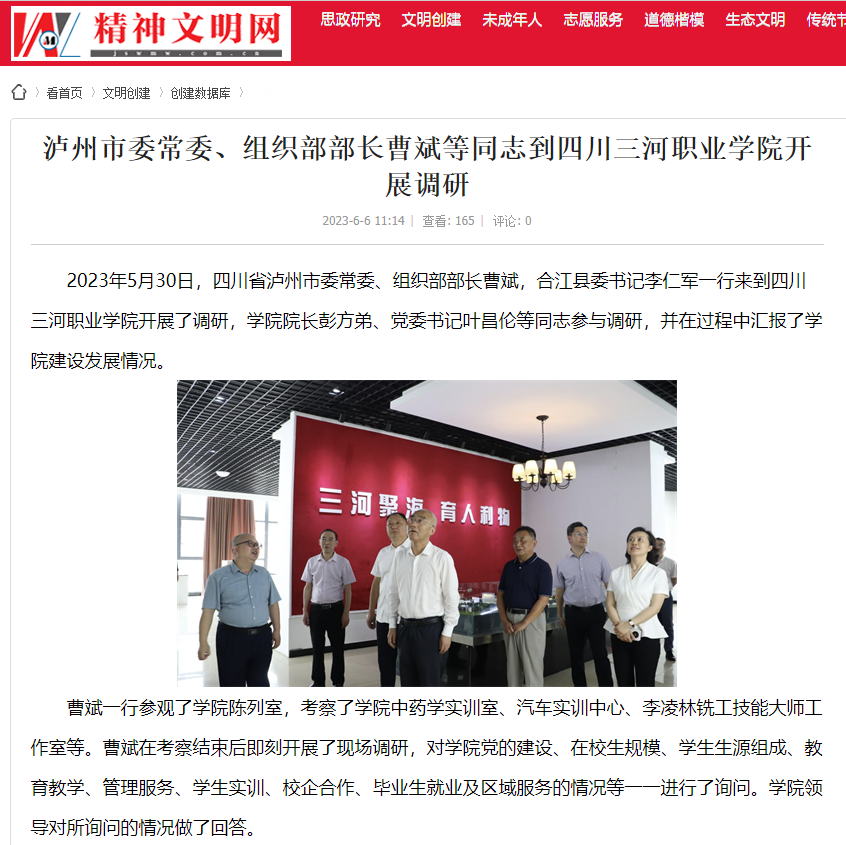 精神文明网:泸州市委常委、组织部部长曹斌等同志到四川三河职业学院开展调研