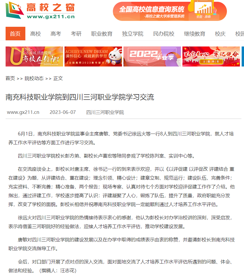 中国高校之窗:南充科技职业学院到四川三河职业学院学习交流
