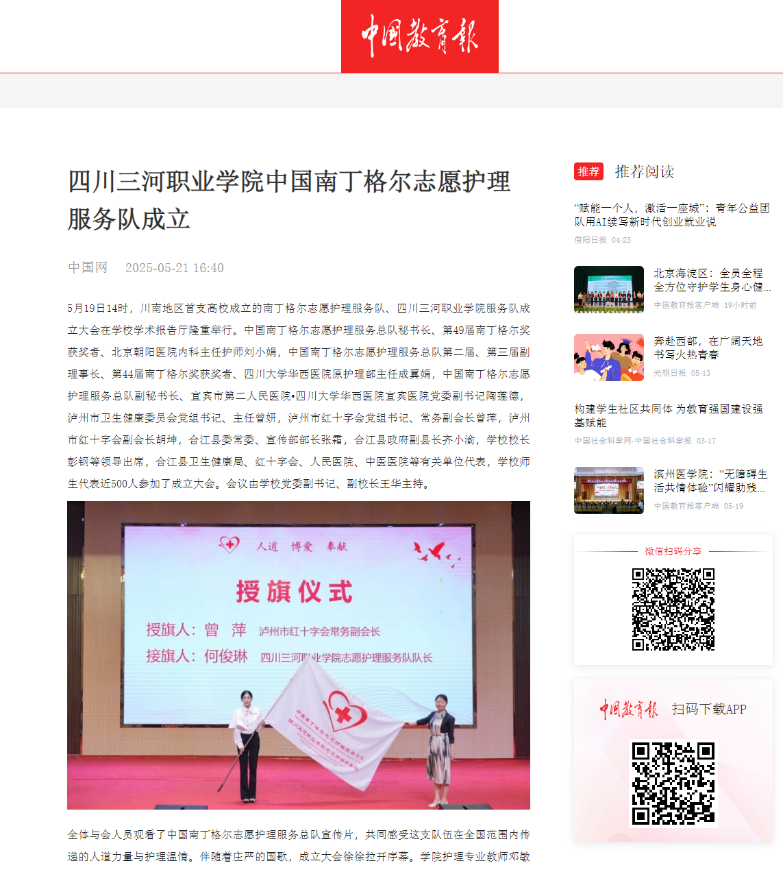 中国教育报:四川三河职业学院中国南丁格尔志愿护理服务队成立