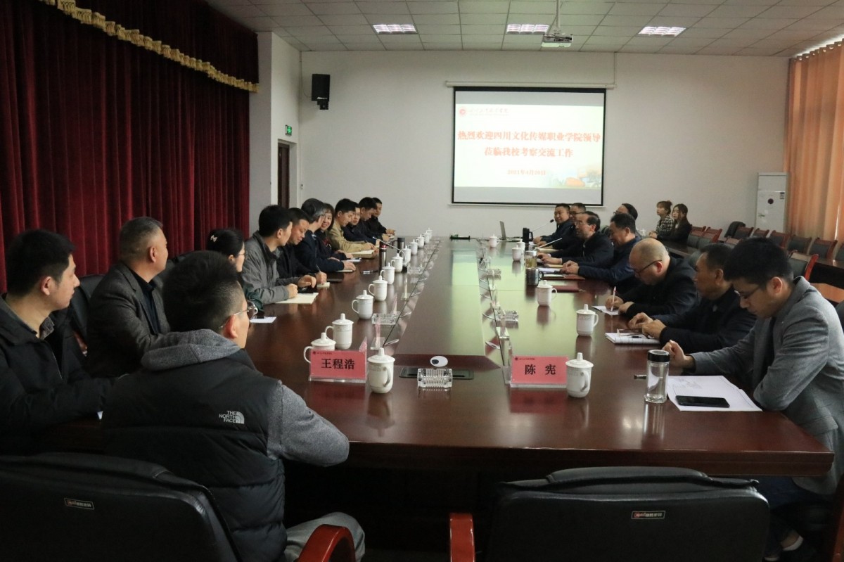 4月20日上午,四川文化传媒职业学院党委书记周世伟、副院长张倩一行13人到校学习交流教学诊断与改进工作。四川三河职业学院校长彭方弟、党委书记叶昌伦、执行董事王文潇等领导热情接待并与客人进行了深入交流。