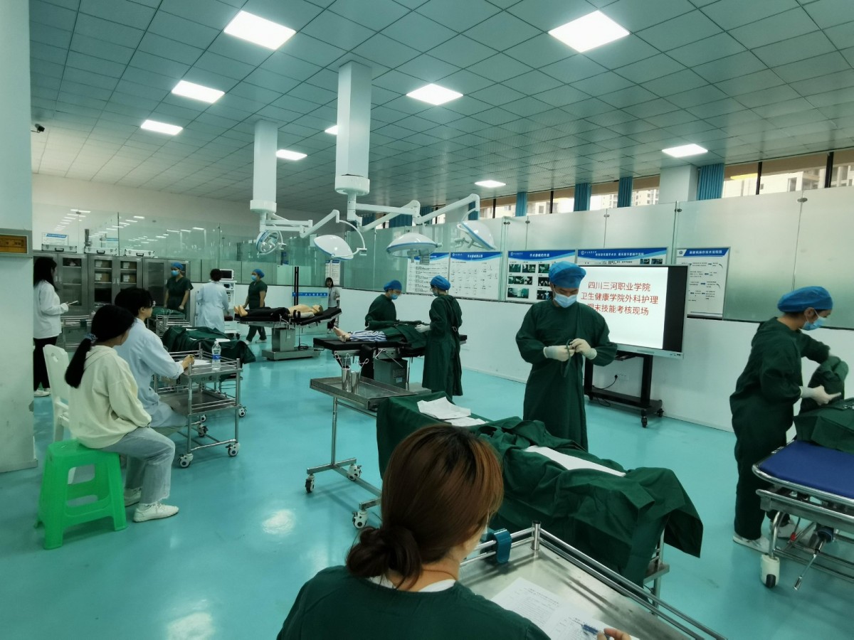其中外科护理对穿脱无菌手术衣、无接触式戴脱手套,腹部外科手术铺巾进行了考核。通过情景模拟、角色扮演,全面考核了学生的综合能力。
