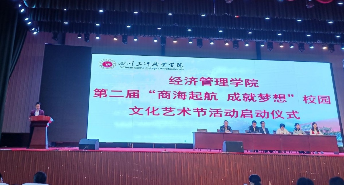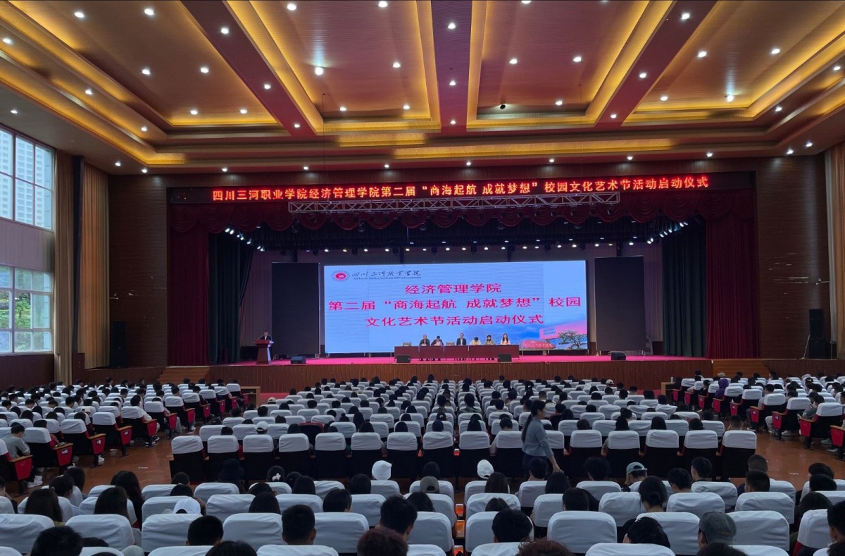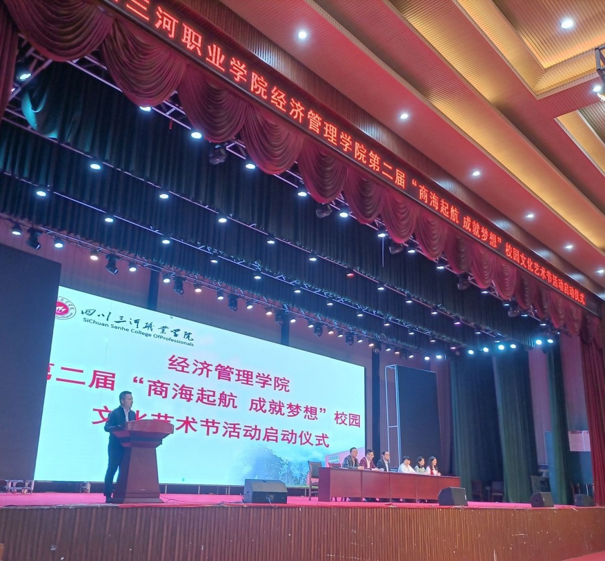 为丰富大学生校园文化生活,展现学生良好精神风貌, 10月12日,四川三河职业学院经济管理学院隆重举行第二届“商海起航,成就梦想”校园文化艺术节开幕式,经济管理学院院长冯俊学、校团委书记郭文宇、学院党政领导出席及全院师生参加了开幕式。开幕式由学院团总支书记阿机老师主持。