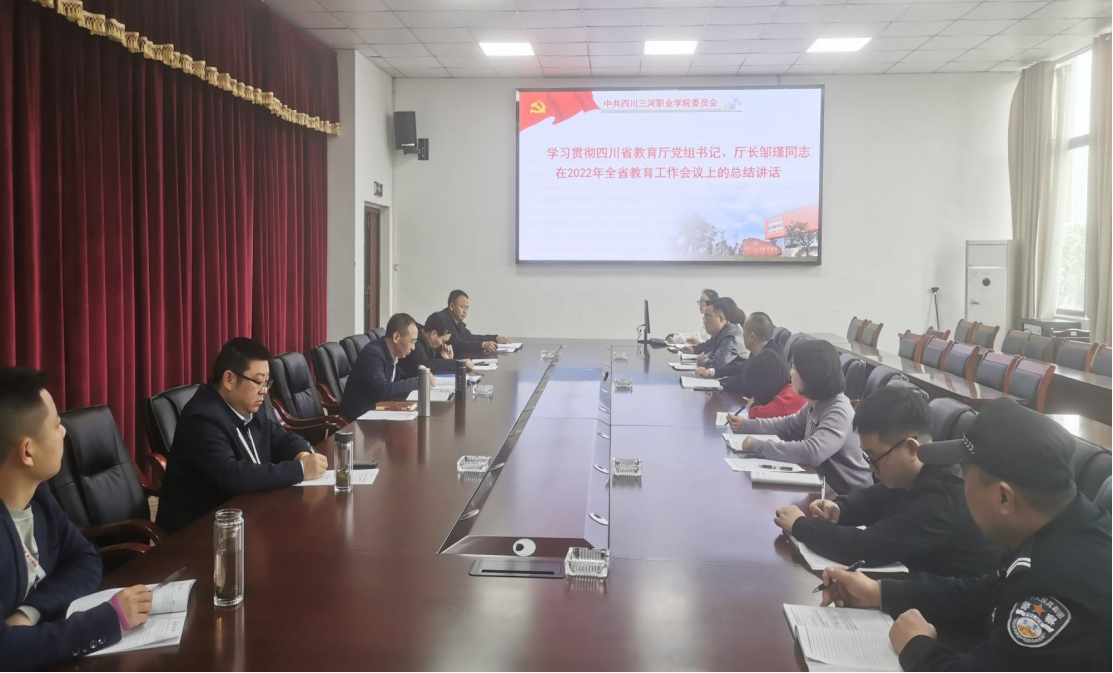 会上,传达学习了2022年全省教育工作会议精神,并结合学院教学工作实际进行讨论,面对新的形势和任务,强调要认真贯彻会议精神,按照务必要树牢正确的人民观,推动四川教育优质均衡发展;务必要树立科学的发展观,切实推进新时期四川教育高质量发展;务必要树立系统的治理观,纵深推进教育领域四大改革;务必要树立与发展并行的安全观,全力守好五条底线红线的工作部署和要求,切实把会议精神转化为加快推进教育改革、促进教育高质量发展的重要举措和具体成效。要把学习贯彻全国“两会”精神、推动党史学习教育常态化长效化同做好中心工作结合起来,按照学院2022年党政工作要点和目标任务,提质培优,对标竞进,满怀信心奋进新征程、建功新时代,以实际行动迎接党的二十大和省第十二次党代会胜利召开!(撰稿人:邓金鑫)