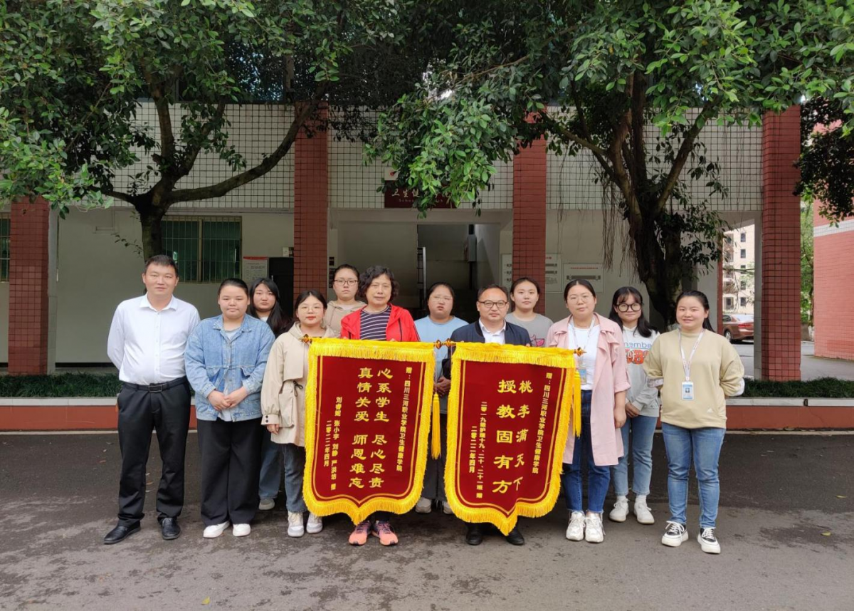 四川三河职业学院2022届毕业生代表向学校赠送锦旗