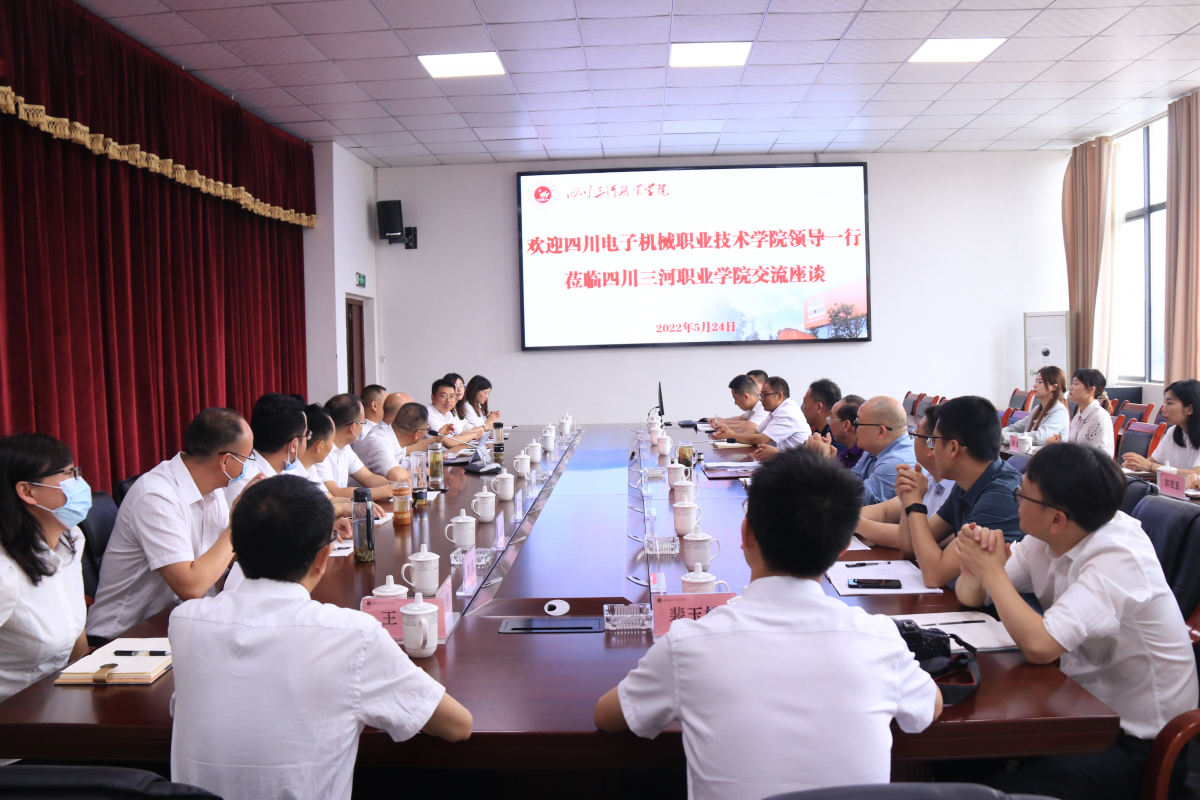 5月24日上午,四川电子机械职业技术学院董事长、院长冷雪来,党委书记吴明军一行15人到我校学习交流内部质量保证体系建设与诊改工作。四川三河职业学院校长彭方弟、执行董事王文潇、党委书记叶昌伦等领导热情接待。