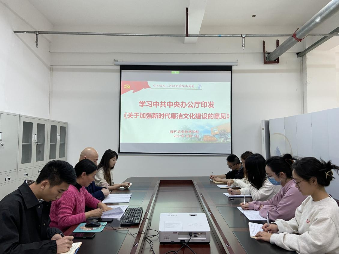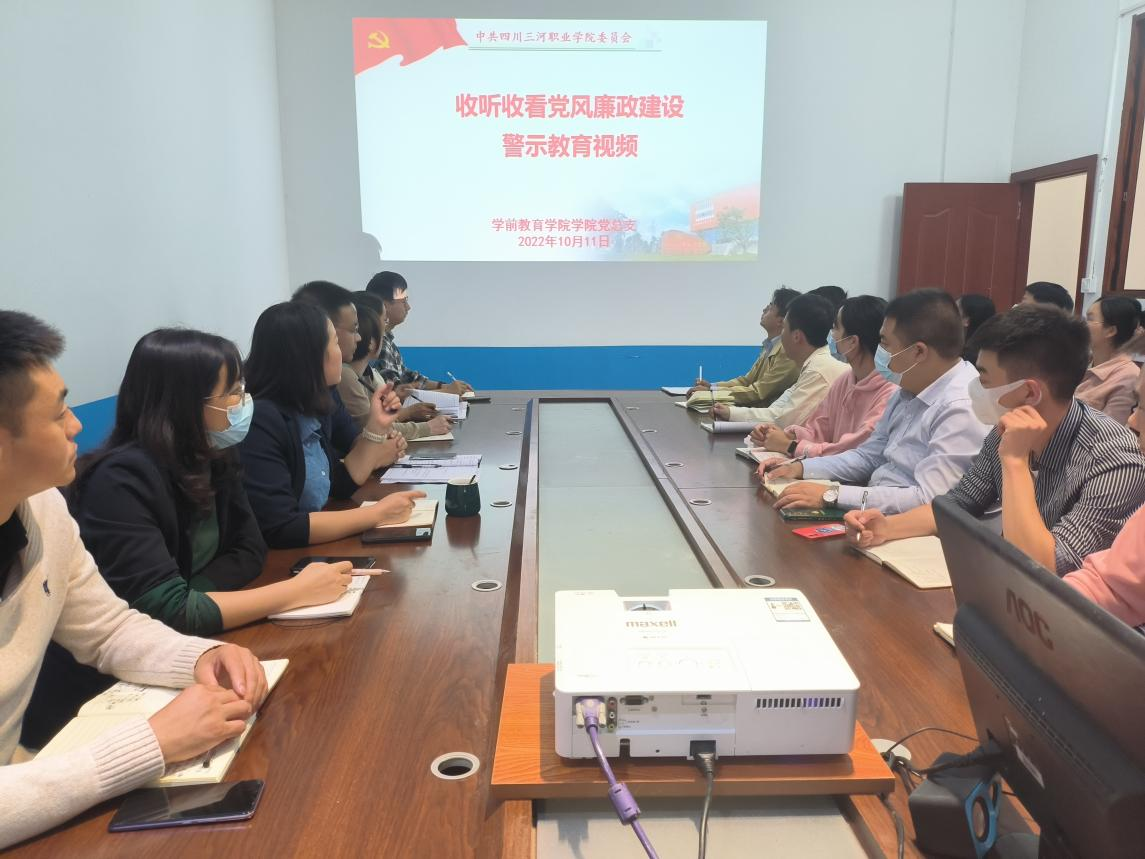 为认真贯彻落实从严治党要求,增强党员干部廉洁自律意识,促进学校师德师风和廉洁文化建设,紧紧围绕立德树人根本任务,营造风清气正的育人环境。近日,四川三河职业学院利用教职工政治理论集中学习时间,开展多形式、全覆盖的党风廉政教育,各党总支、党支部分别组织全体教职员工学习了《中国共产党廉洁自律准则》《关于加强新时代廉洁文化建设的意见》,收听收看了《党风廉政建设警示教育影视》。