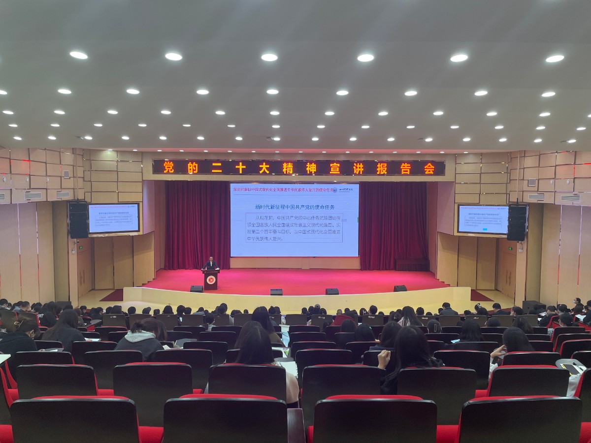 为深入学习宣传贯彻党的二十大精神,11月16日下午,泸州市委宣讲团第九分团成员杜乾举教授,到四川三河职业学院进行党的二十大精神宣讲。学校党委书记叶昌伦,以及党委中心组全体成员、师生代表240余人参加讲座。学校党委副书记王华主持宣讲会。
