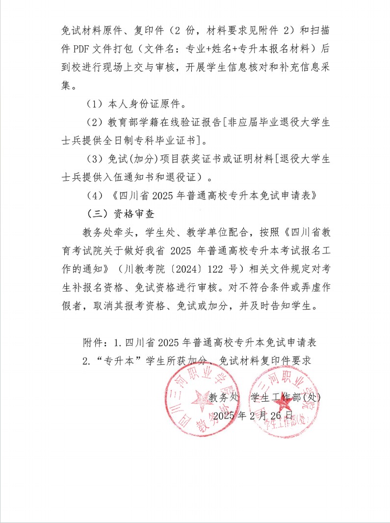 上一篇:四川三河职业学院关于2025年专升本网上报名的通知