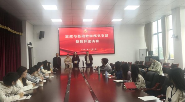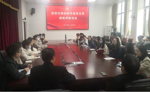 11月5日上午,思政与基础教学部党支部组织马克思主义学院和基础教学部全体新入职教师在二会议室召开座谈会,基础教学部主任何庆高、马克思主义学院副院长黄道勋等领导出席,全体新入职教师参加会议。会议由支部书记黄江主持。