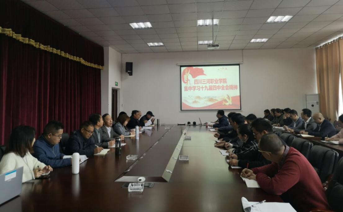四川三河职业学院深入学习贯彻中共十九届四中全会精神 中共十九届四中全会于2019年10月28日至31日在北京召开。十九届四中全会是在庆祝新中国成立70周年的重要节点,向全面建成小康社会、实现第一个百年奋斗目标迈进的关键之年召开的一次重要...