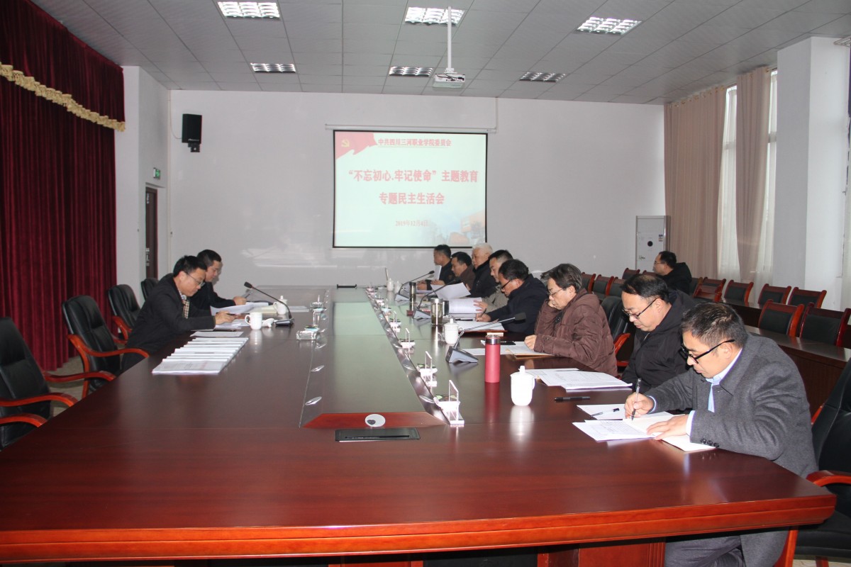 四川三河职业学院召开“不忘初心、牢记使命”专题民主生活会 12月4日下午,四川三河职业学院在行政楼二会议室召开“不忘初心、牢记使命”专题民主生活会。会议紧扣学习贯彻习近平新时代中国特色社会主义思想主线,聚焦“不忘初心、牢记使命”主题,紧...