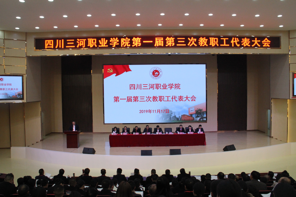 四川三河职业学院召开第一届第三次教职工代表大会正值全国上下开展“不忘初心、牢记使命”主题教育活动和学习党的十九届四中全会精神之际,为进一步规范学校管理,实行民主管理,充分发挥教代会的职能,11月17日下午,四川三河职业学院在学术报告厅召开了...