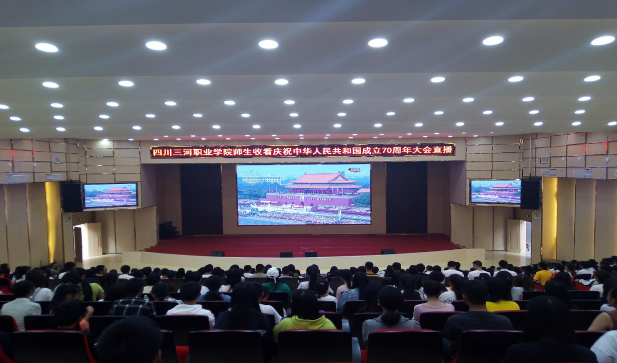 四川三河职业学院组织师生收看庆祝中华人民共和国成立70周年大会、阅兵式、群众游行直播盛况 10月1日上午,四川三河职业学院在学术报告厅组织师生收看庆祝中华人民共和国成立70周年大会、阅兵式、群众游行直播盛况,学院党委书记王文潇、副院长苏...