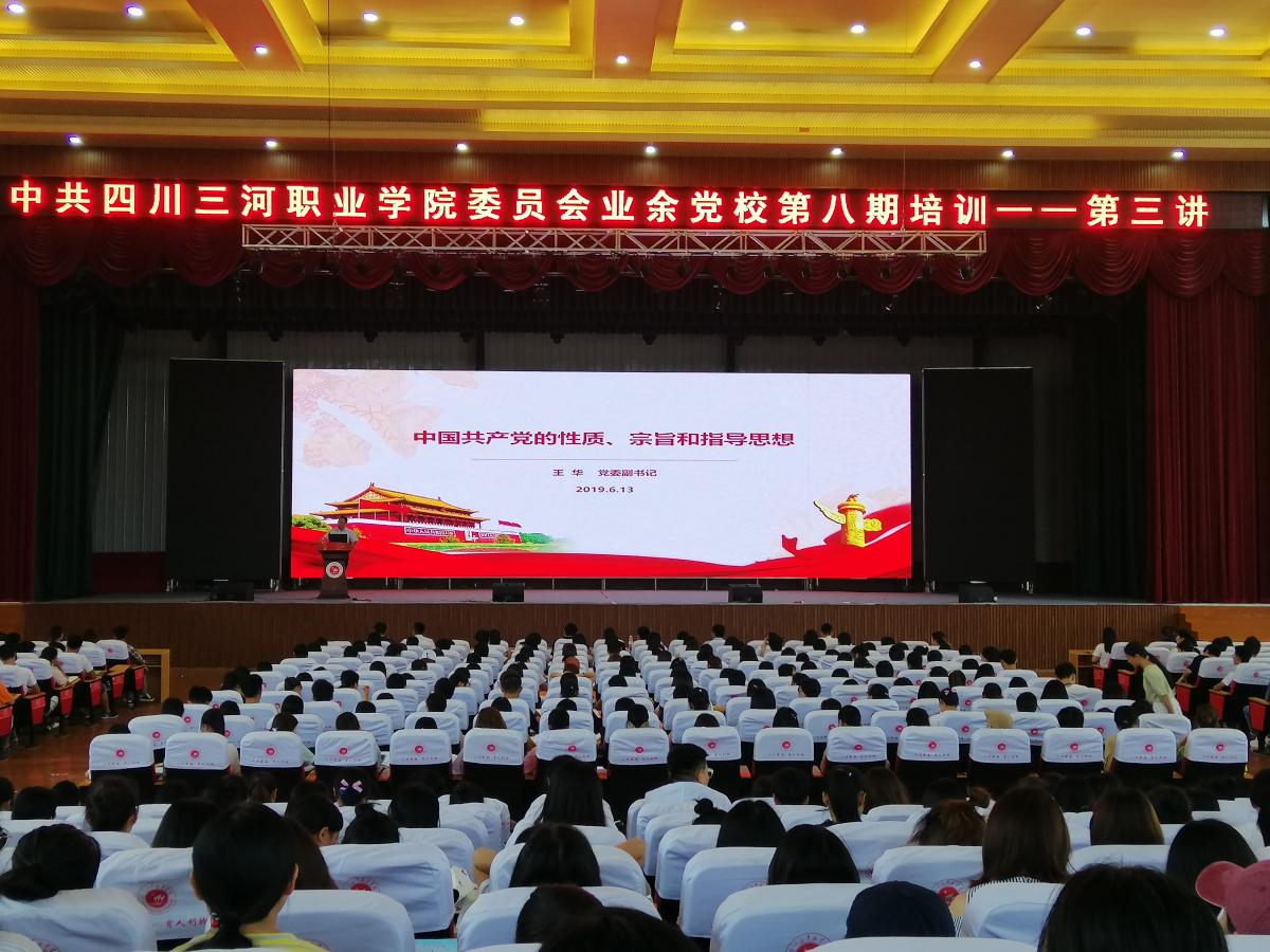 四川三河职业学院院长彭方弟为业余党校学员讲授党课 为持续深入学习贯彻习近平新时代中国特色社会主义思想,十九大报告精神,于5月8日下午博山礼堂,学院院长彭方弟为党员、发展对象、业余党校学员等800余人,解读了十九大报告中“新时代”的深刻内...