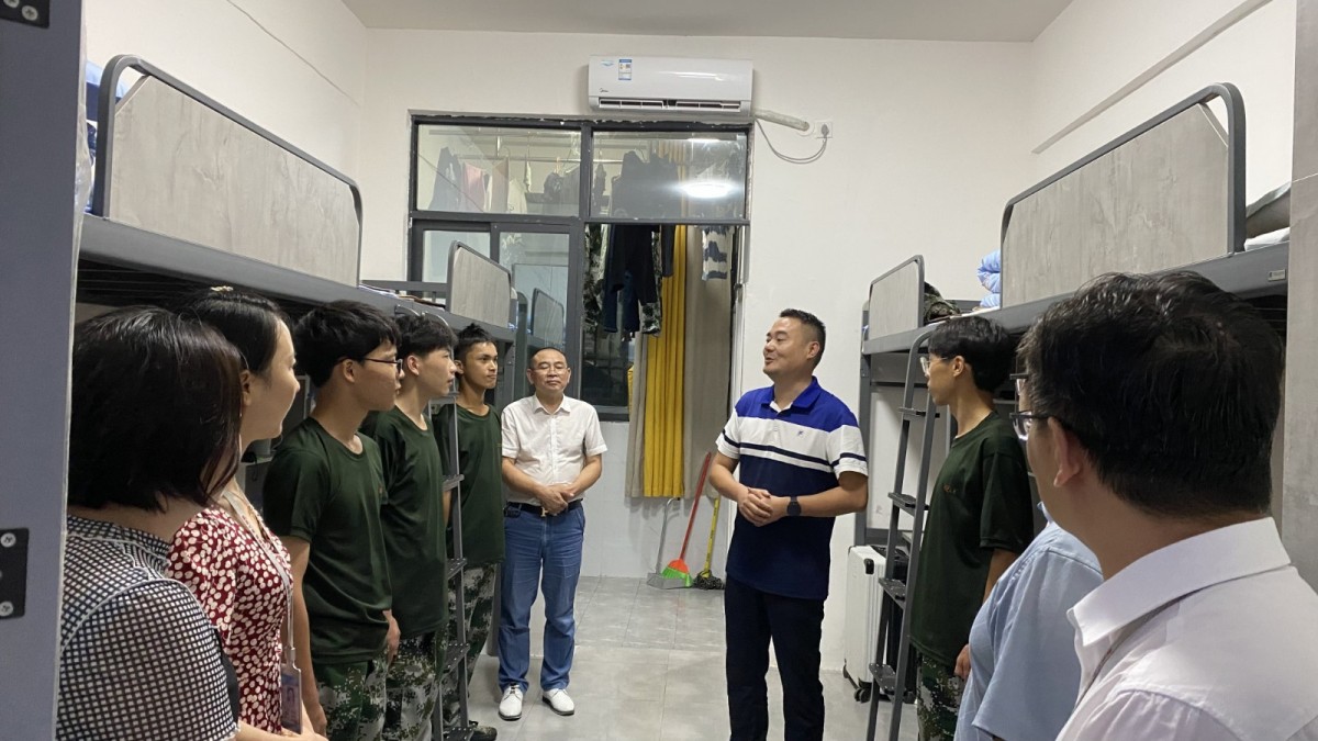 军训期间,为深入了解2021级新生入校以后的生活情况,四川三河职业学院执行董事王文潇、校长彭方弟、党委书记叶昌伦等校领导带领党政领导干部,走访新生公寓,关心关爱新同学。