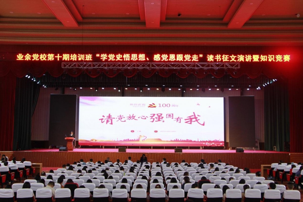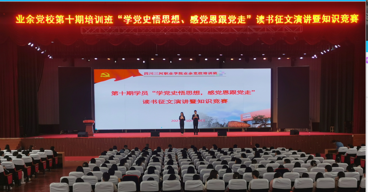 10月10日下午,四川三河职业学院业余党校在博山礼堂举行“学党史悟思想、感党恩跟党走”读书征文演讲暨知识竞赛活动。业余党校校长邬正福、各党(总)支书记、党员代表评委及第十期党校培训班学员700余人参加活动。