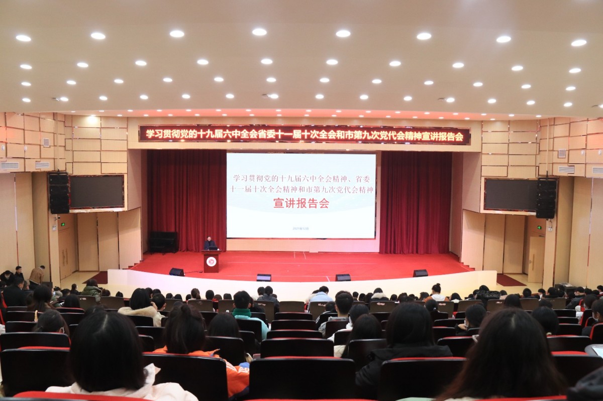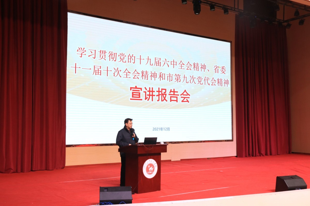 在泸州全市上下深入学习宣传贯彻党的十九届六中全会、省委十一届十次全会和市第九次党代会精神之际,12月16日下午,按照市委统一安排,市委宣讲团第十分团(高校学校宣讲分团)专家、四川三河职业学院副校长陈真教授,为我校干部、思政课教师、辅导员及部分学生代表近300人作宣讲报告。学校党委书记叶昌伦主持会议。
