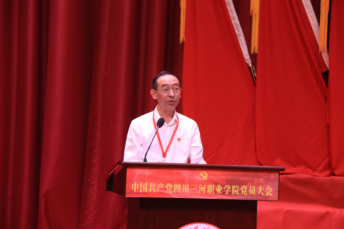 根据《中国共产党章程》和《中国共产党普通高等学校基层组织工作条例》,经四川省委教育工委批复,5月17日,中国共产党四川三河职业学院党员大会在学术报告厅隆重召开。学校党委书记叶昌伦、执行董事王文潇、校长彭方弟等校领导出席大会并在主席台就座,全校党员参加了大会,大会还邀请了部分民主党派、无党派人士、教师代表列席会议。