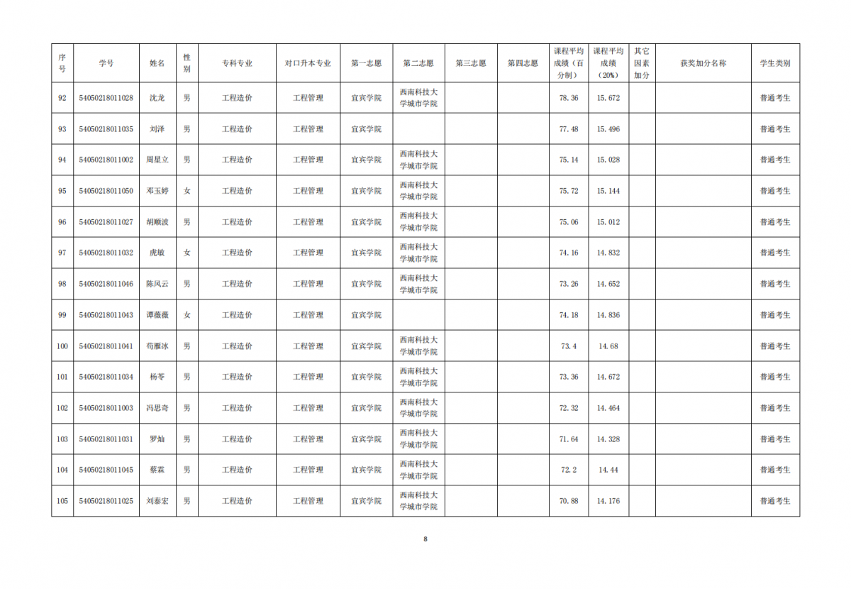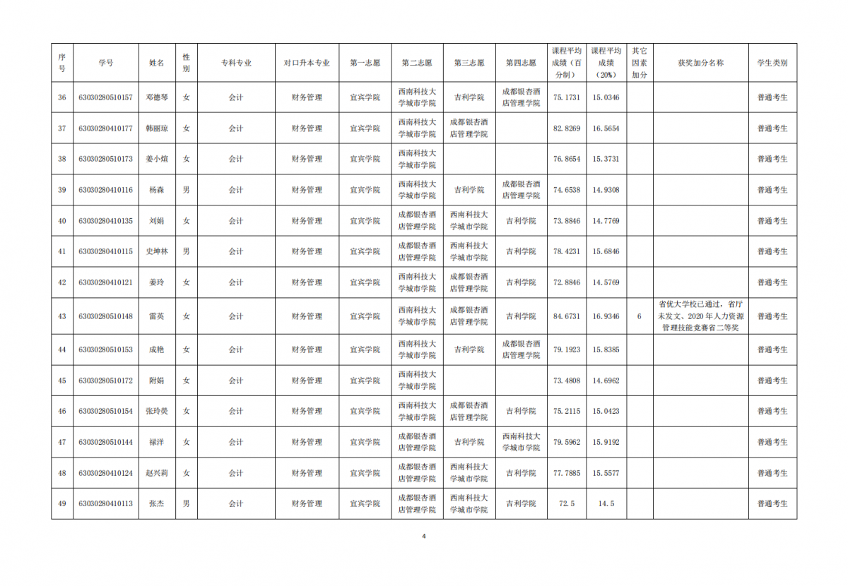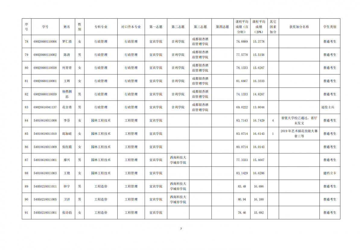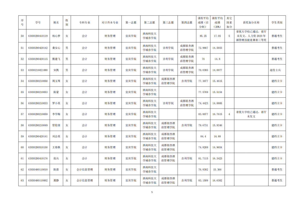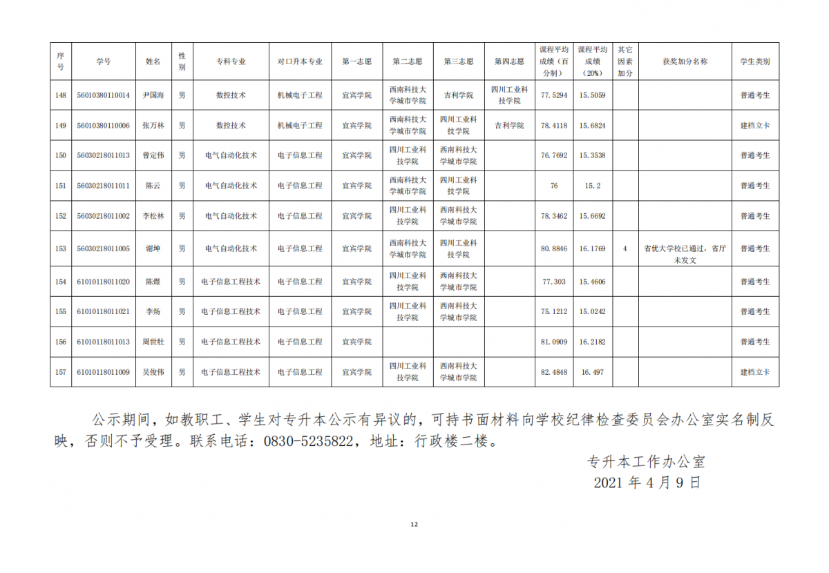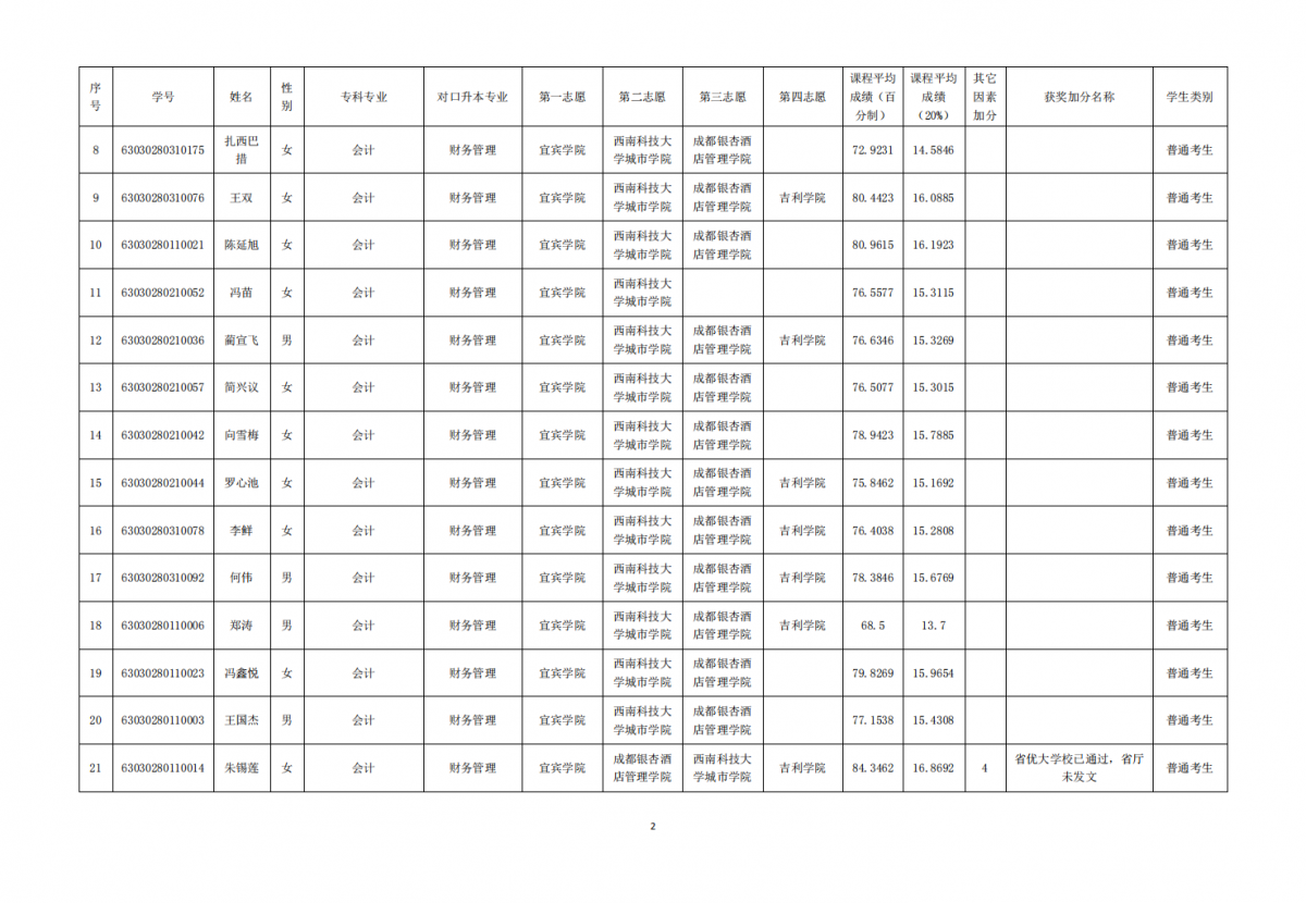关于宜宾学院2021年跨校“专升本”报名学生公示
