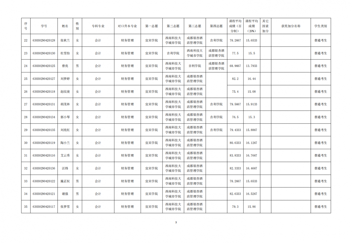 根据《四川省教育厅关于2021年普通高等学校选拔优秀专科毕业生进入本科阶段学习的通知》(川教函〔2021〕43号)《宜宾学院2021 年“专升本”工作方案》宜学院发﹝2021﹞2 号和《四川三河职业学院2021 年“专升本”工作实施办法》(三河职院院发〔2021〕12 号)文件精神,学校专升本办公室按文件要求组织开展2018级学生专升本报名工作。现将经我校审核通过的“专升本”报名学生予以公示,公示时间2021年4月9—4月15日(五个工作日)。