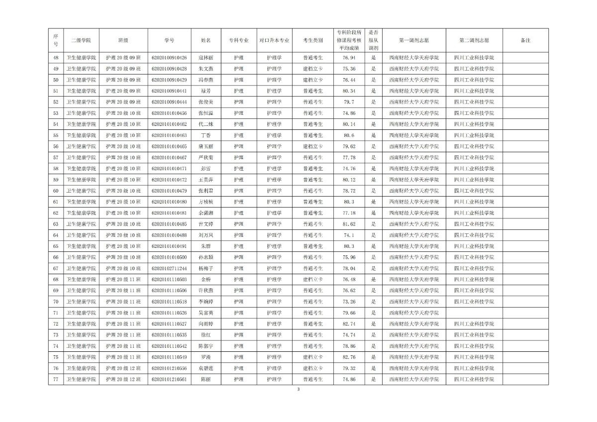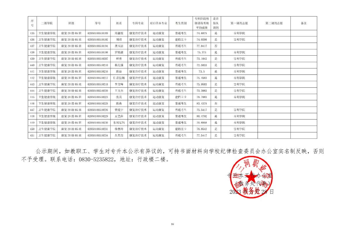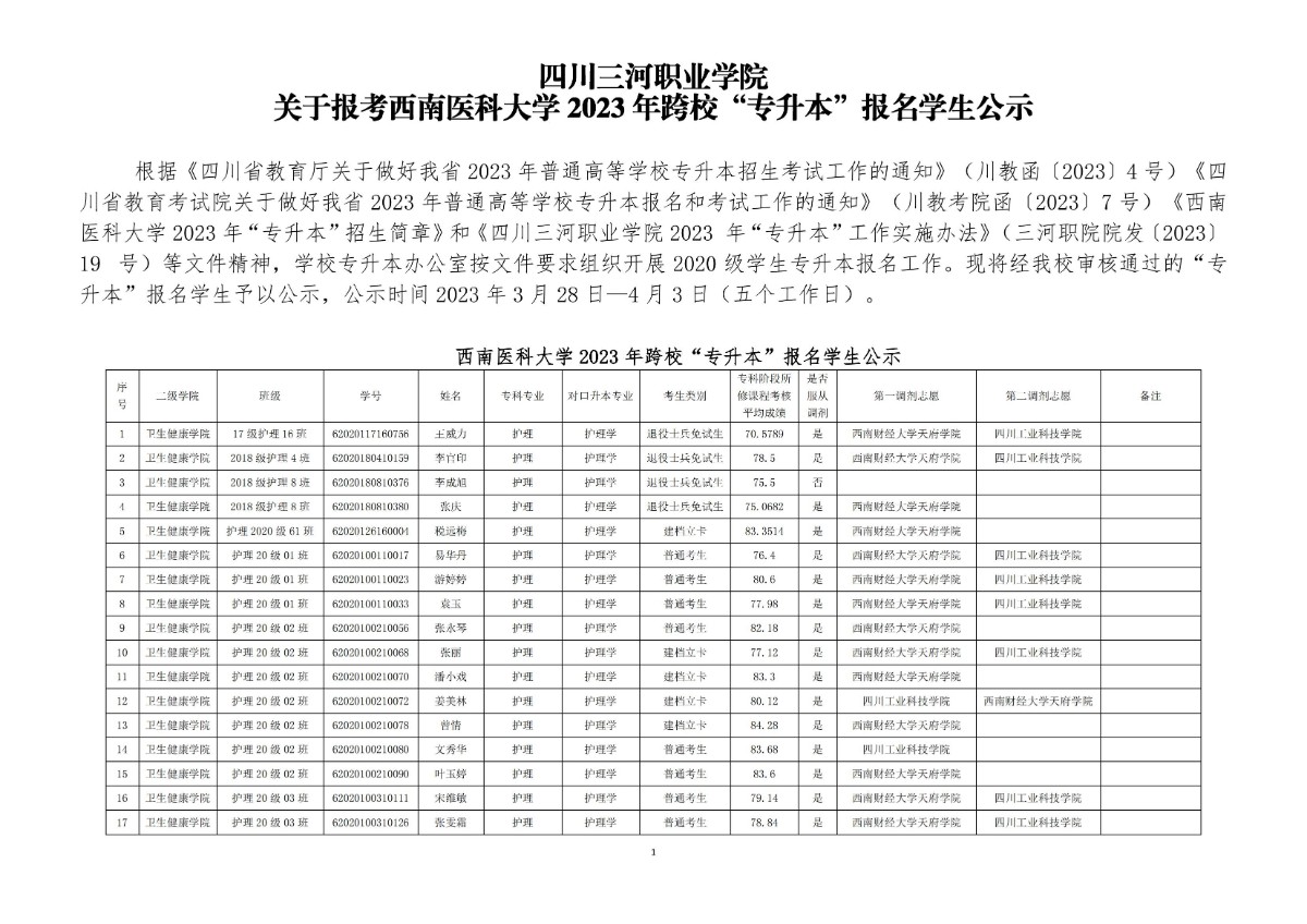 附件:四川三河职业学院关于报考西南医科大学2023年跨校“专升本”报名学生公示
