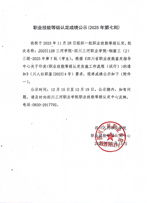 四川三河职业学院2025年钢筋工、数控车床职业技能等级认定考试预公告