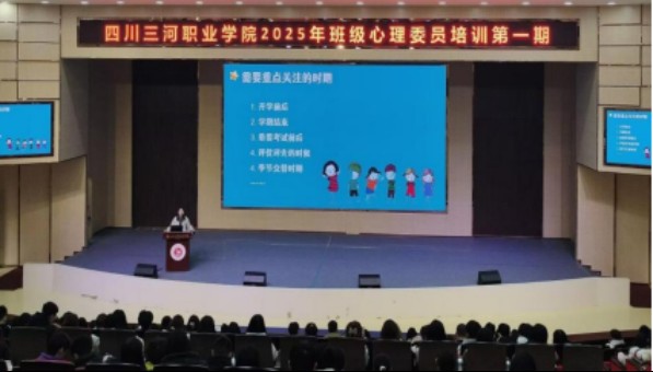 2025年2月25日,四川三河职业学院在学术报告厅成功举办了2024-2025学年第2学期首场心理委员培训会。会议由大学生心理健康中心主任周科主持,2023级与2024级全体心理委员积极参与。