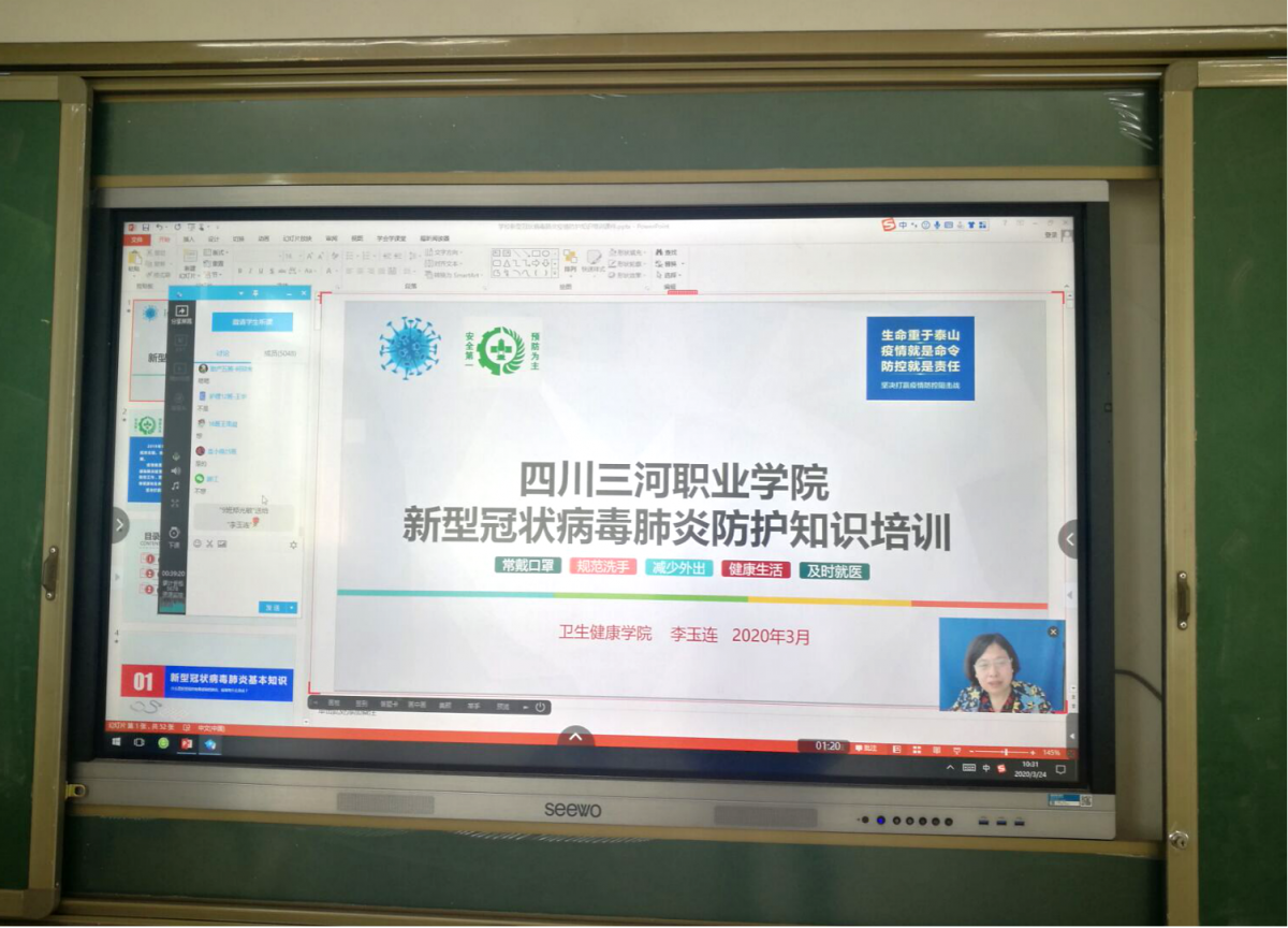 此次讲座通过网络直播方式开展,5000余名同学在线听课。李玉莲教授对新型冠状病毒概述、传染源、传播途径、临床表现、治疗以及预防等知识做了详细的讲解,进一步提高了我校学生对新型冠状病毒防治知识水平和防控能力。