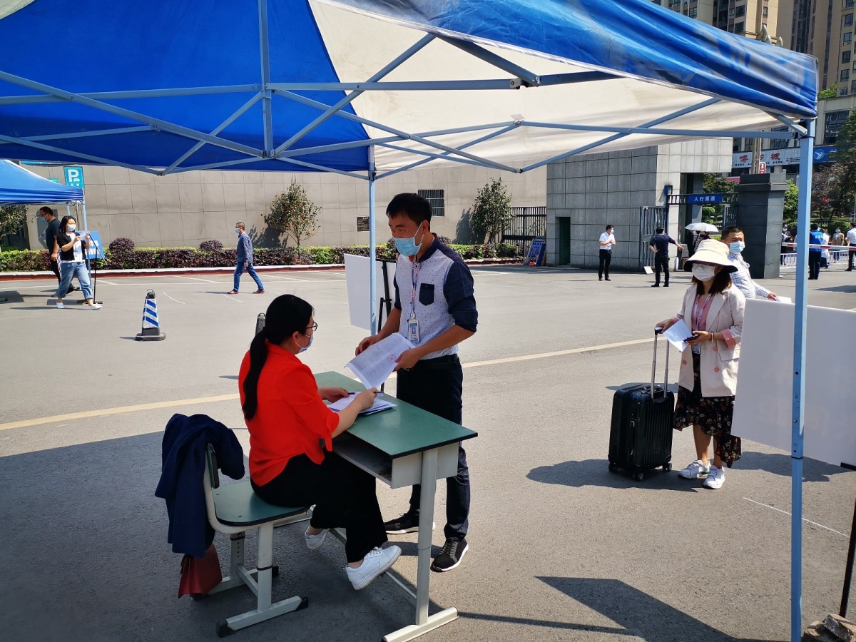 上午,召开演练筹备会,学院党委副书记王华对演练工作进行布置。下午3点整,开学模拟演练正式开始。由辅导员组成的“学生队伍”在引导员的指引下,按照流程有序进入校园。此次模拟演练分为到校报到、异常情况紧急处置、食堂用餐、进入宿舍、教学楼上课、进入图书馆六个演练环节,分别在学院东校门、学生电梯公寓、美食广场、博源信息图文中心、综合教学楼、教室(实训室)开展了身份确认、体温监测、异常处置、现场消毒、隔离观察、医学治疗、心理疏导、生活保障等演练。