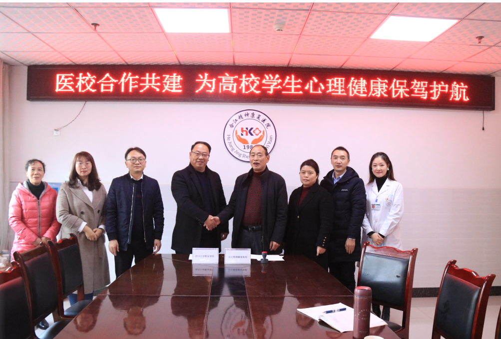 在合江县精神康复医院会议室,我校党委副书记王华代表学校与医院古思翰院长签署了大学生心理危机和预防干预医校合作协议,学生处副处长丁小林、心理健康教育中心周科主任及曾淑英副教授出席了签署仪式。