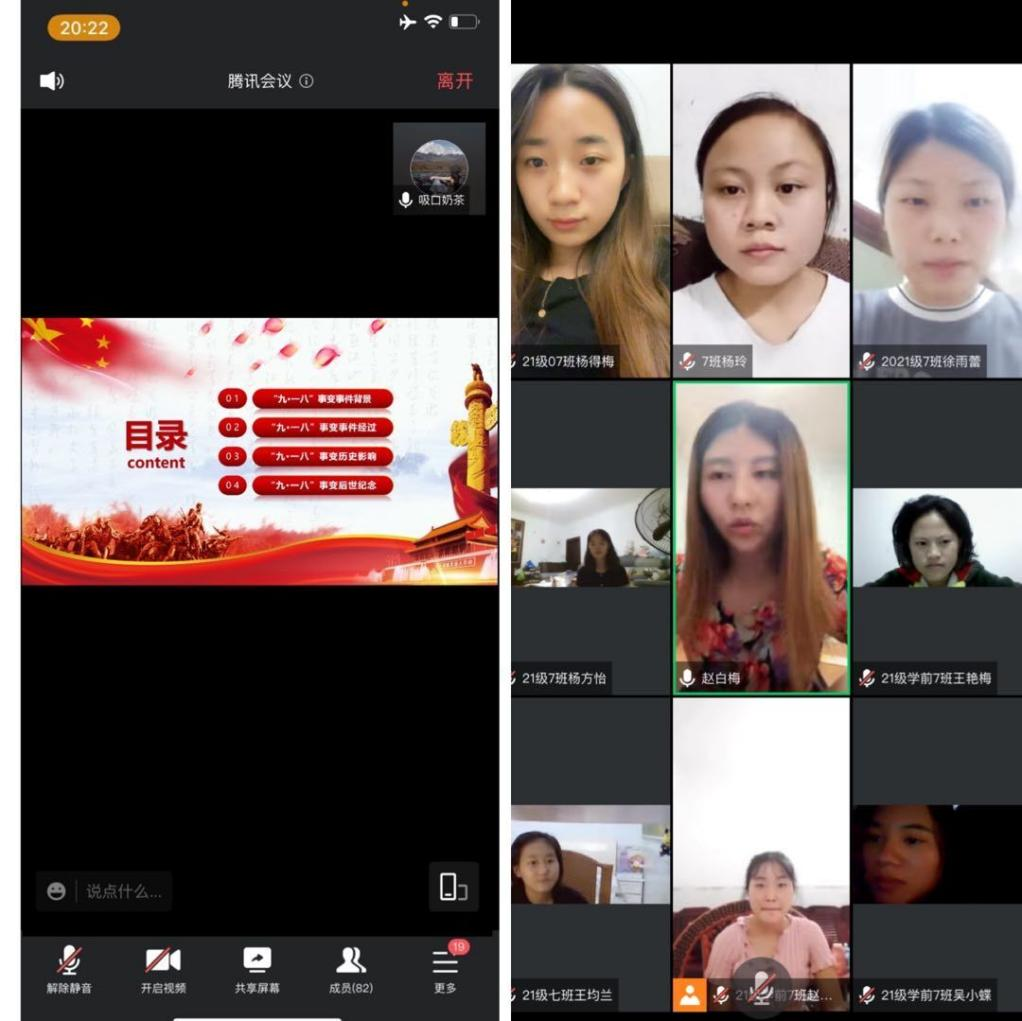 活动采用线上的方式,各二级学院团总支书记与各班团支部书记带领青年团员们重温“九·一八”前后的中华民族抗战史,在激发全体青年团员爱国之心的同时,更提醒同学们勿忘国耻、牢记历史,树立正确的世界观、人生观、价值观,为实现中华民族的伟大复兴而努力奋斗。